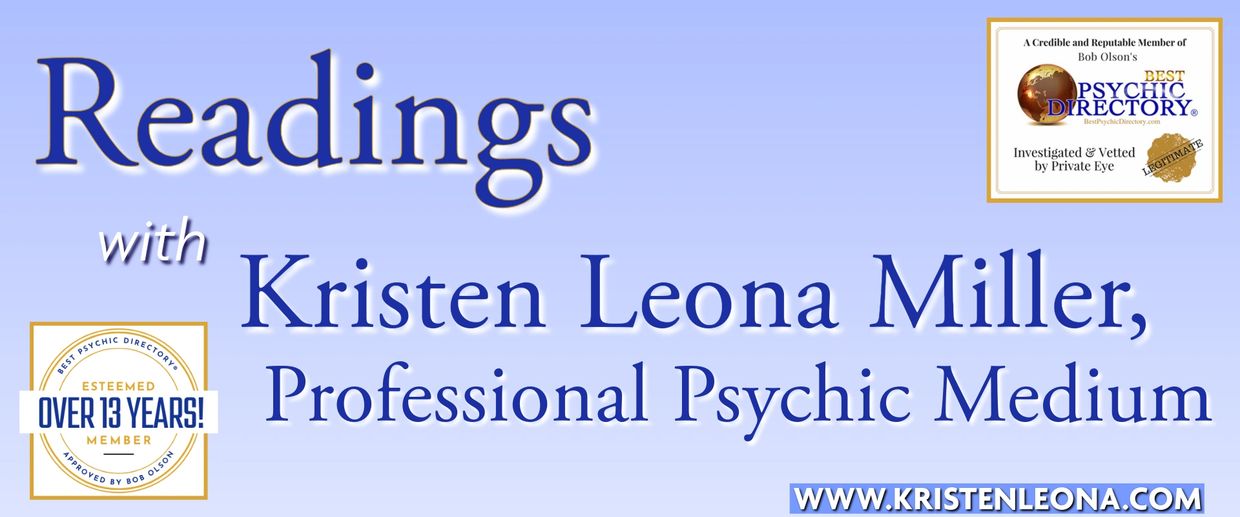 Psychic Readings with Kristen Leona Miller are insightful, answer questions, provide guidance and can promote healing. By utilizing her incredibly accurate psychic insight, she assists her clients through all of life’s circumstances.